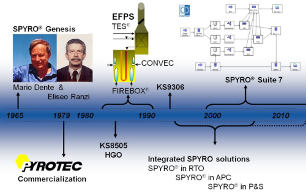 The history of SPYRO® simulation software started in the late sixties when a kinetic and mathematical model was postulated by the first program author, Professor Mario Dente. Soon thereafter a team consisting of Professor Dente and Professor Eliseo Ranzi among others, was formed which took upon them the further development.